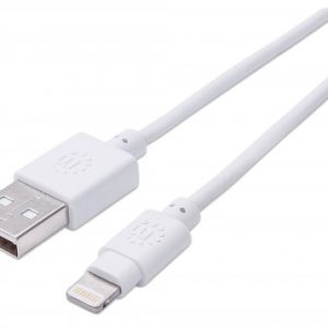 Manhattan (390781) iLynk USB Cable with Lightning Connector - A Male / 8-Pin Male, 0.5 m (1.5 ft.), Connects an iPod, iPad or iPhone to a USB port, Supports speeds up to 480 Mbps, White, Retail Box, Limited Lifetime Warranty