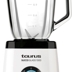 Taurus 1.5L Succo Glass 1300W Jug Blender - 1300W, 1.5L graduated glass jar, Removable 4-edge stainless steel blades, 2 speeds and pulse function, Filling spout in the lid with a lockable 50ml measuring cup, Jug and blades are dishwasher safe and 1 year warranty
