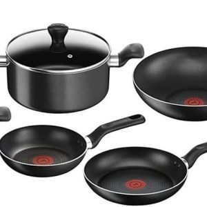 Tefal 12PC Set Super Cook Non Stick - Thermo-spot marking turns full red when the pan reaches the ideal temperature, High-quality titanium-infused coating delivers outstanding non-stick performance, Compatible with all hobs except induction, Easy to use and clean.