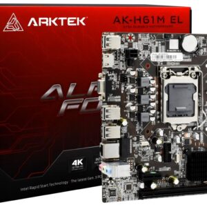 ARKTEK Model: AK-H61M EL Socket: LGA1155 Chipset: Intel H61 Memory Support: Dual Channel DDR3 H61 MB 1155 MATX – AK-H61M EL Processor: Intel Socket 1155 for Intel Core i7 /Core i5 /Core i3 /Pentium /Celeron Processors Chipset: Intel H61 Chipset On-Board Graphics: Intel Graphics Media Accelerator X4500 HD Memory: DDR3