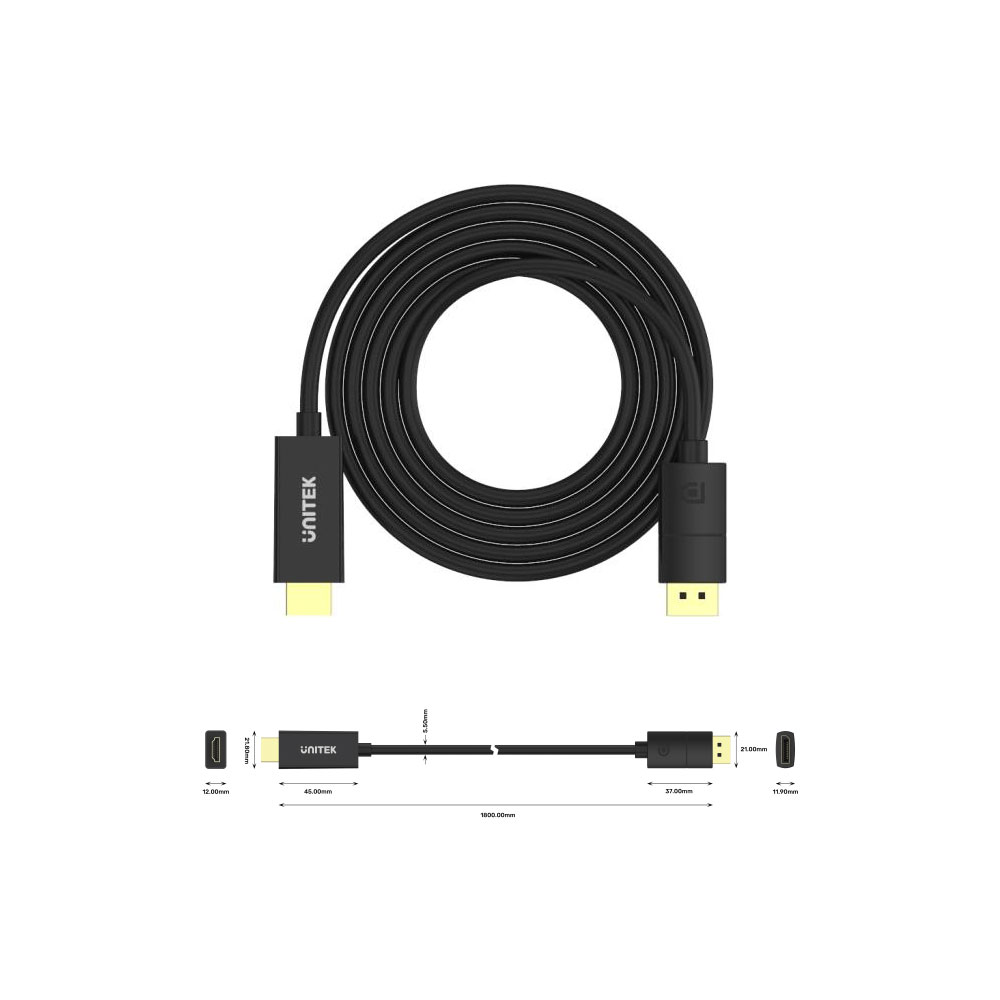 • Unidirectional Cable – DisplayPort to HDMI is NOT bi-directional
